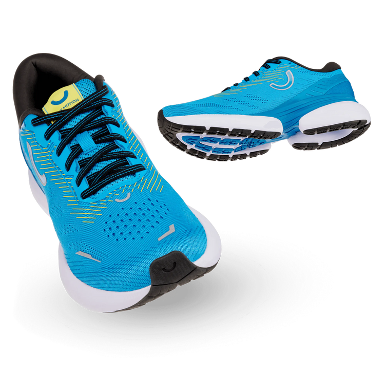 True Motion’s U-TECH™ technology has been inspired by human structures in form and function – such as the menisci in the knee or the fat pad around the heels. Based on this, U-TECH™ technology is a U-shaped midsole in the rearfoot. This design allows the heel to sink into the designated recess during transition. In this way, the forces that occur during running are centered and aligned through our body – as nature intended. Potentially damaging rotational forces in the knee are rendered harmless and a significant factor in the development of knee injuries is eliminated. Or to put it another way: U-TECH™ allows us to move naturally.