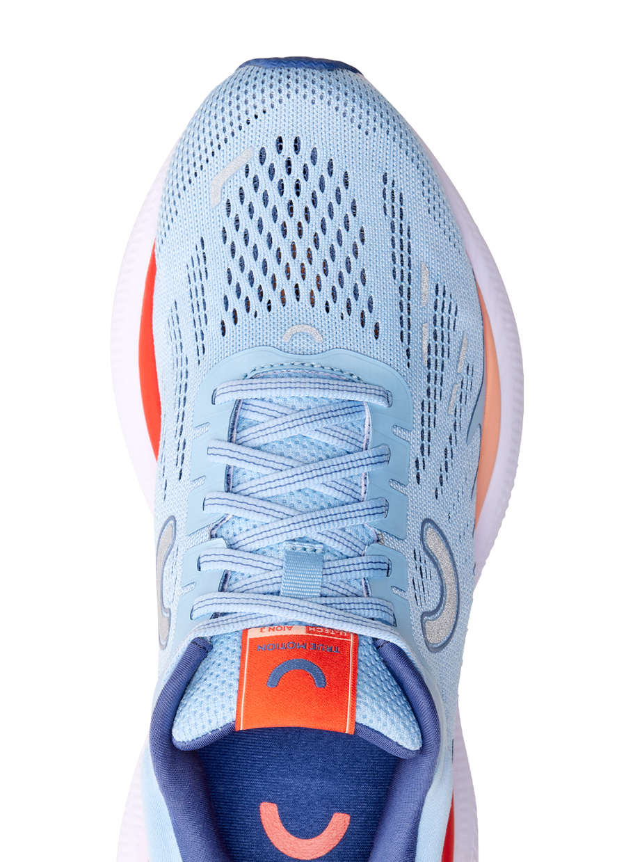 For everyone looking for a stable, well-cushioned, and extremely comfortable running shoe. We don't use categories like neutral or support. Our technology centers the point of force application throughout the entire movement. This eliminates the cause of unphysiological stress and prevents problems from arising in the first place. Whether you previously ran in a neutral or stability shoe or used insoles, you are safe and well-served in the U-TECH Aion 3. Compared to the U-TECH Nevos, the U-TECH Aion 3 offers more cushioning and increased comfort. The asymmetrical design of the U-TECH™ tubes (Biological U-TECH™) is based on the anatomical-biological structures of the foot, allowing for an extremely soft roll and perfect centering of the forces exerted. Additionally, thanks to even more fully recycled materials, the U-TECH Aion 3 is the most sustainable True Motion running shoe to date.
